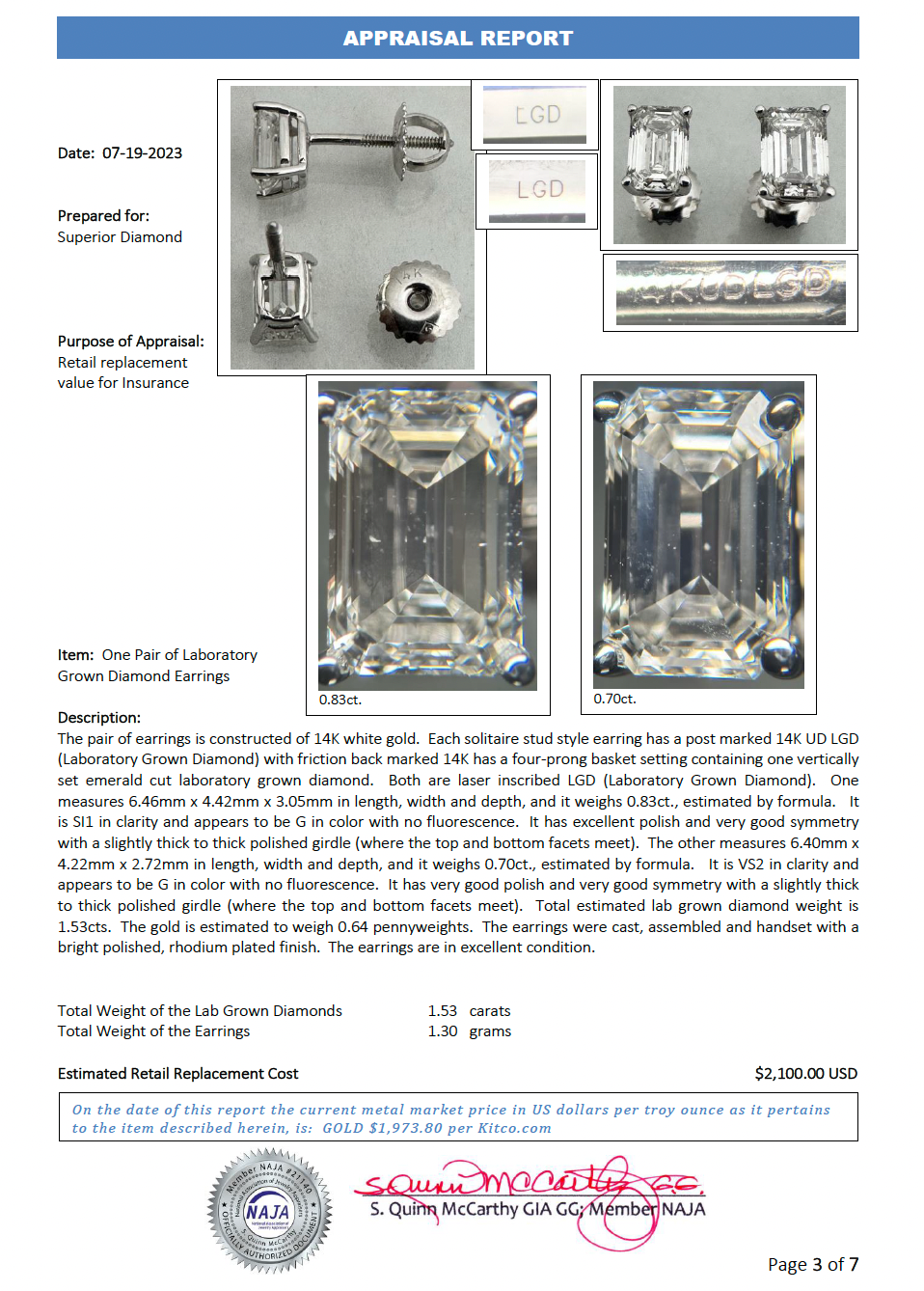 Total Primary Stone(s) Carat Weight: 1.53 ctw