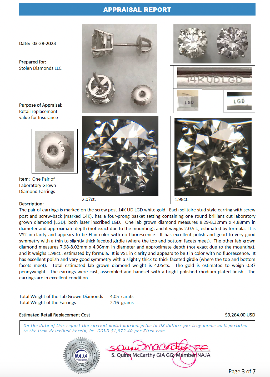 Total Primary Stone(s) Carat Weight: 4.05 ctw