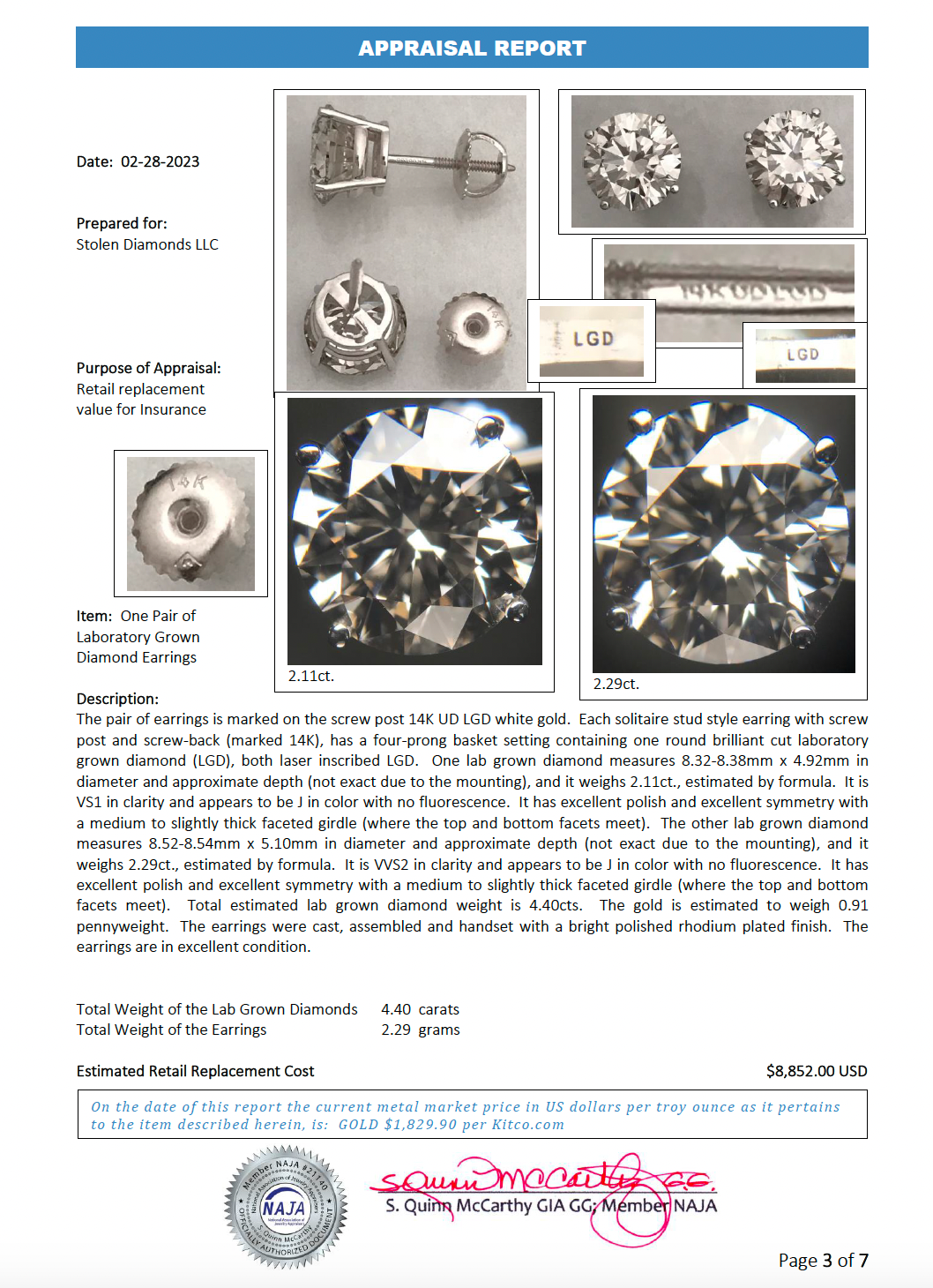 Total Primary Stone(s) Carat Weight: 4.40 ctw