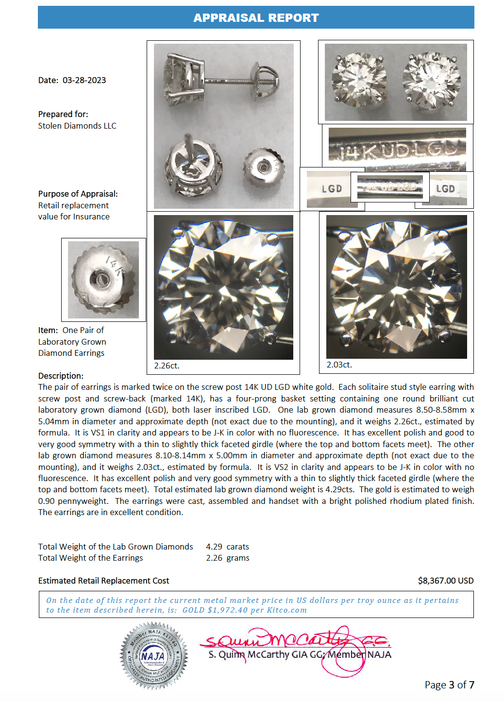 Total Primary Stone(s) Carat Weight: 4.29 ctw