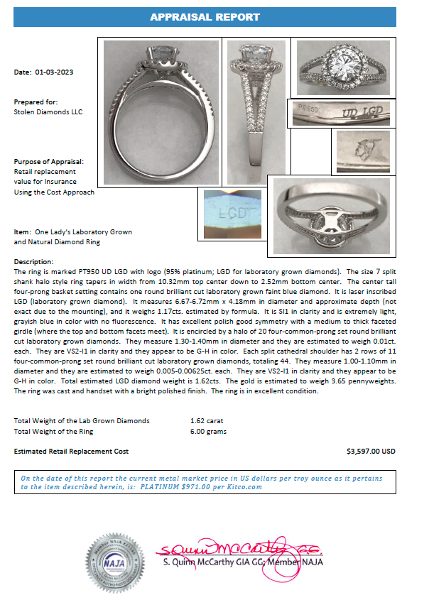 Total Primary Stone(s) Carat Weight: 1.17 ct